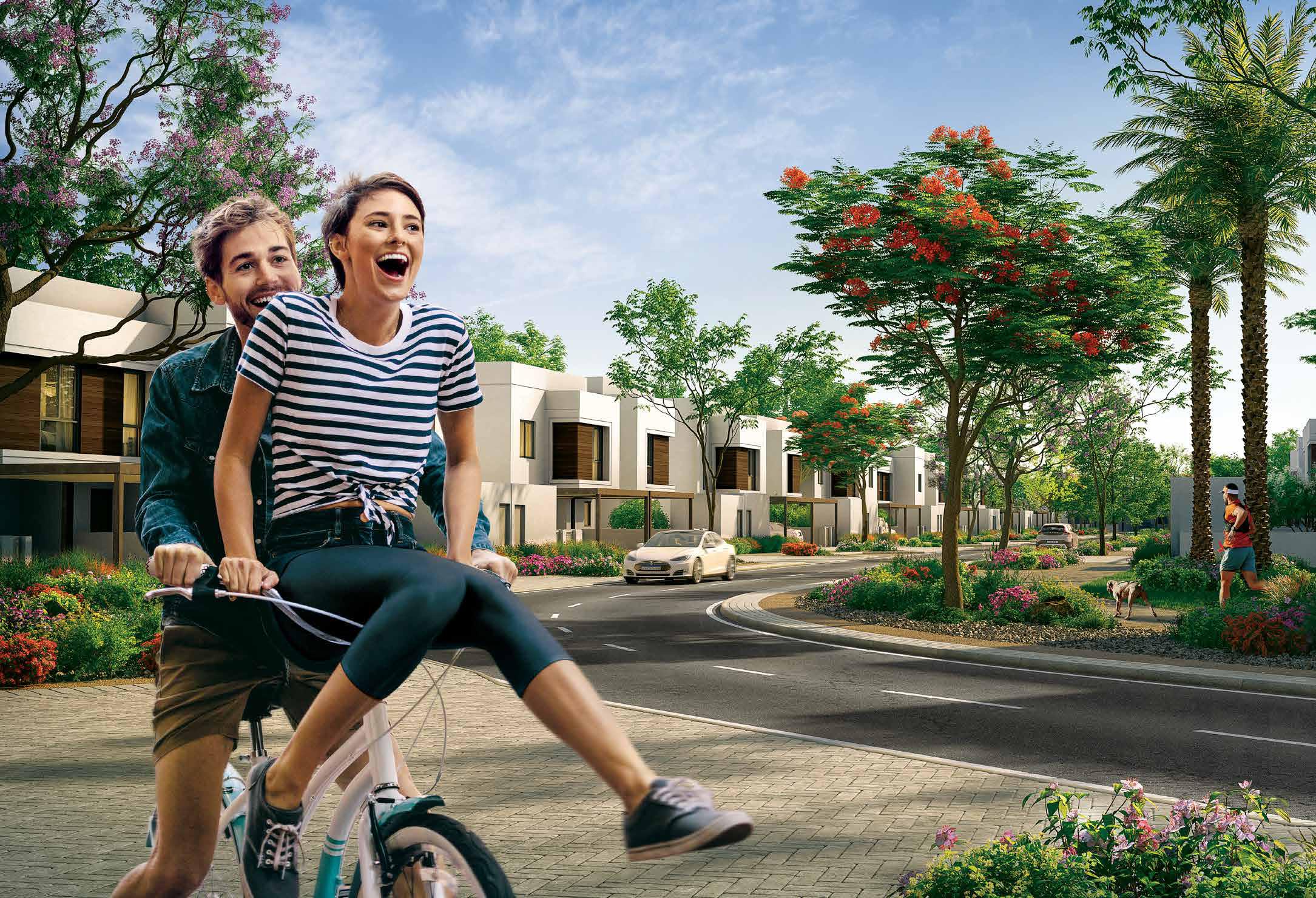 Residents enjoy resort-style amenities, including swimming pools with kids splash pads, a fully equipped gym, playgrounds, BBQ and picnic areas, community clubhouse, multipurpose halls, pedestrian and bike trails, edible gardens, and sports facilities like tennis and basketball courts.